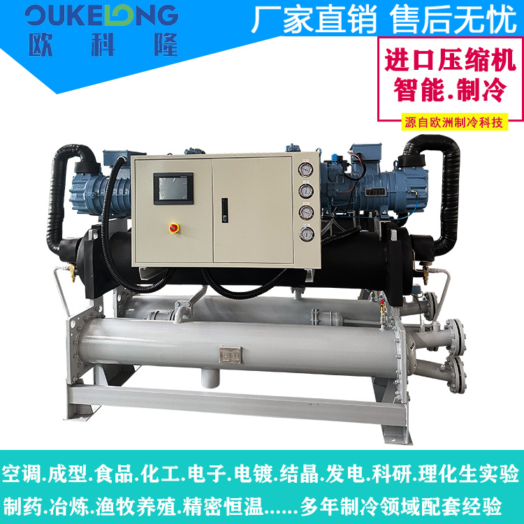 欧科隆150HP双机头螺杆式冷水机是新一代超高效工业制冷设备,采用革命性气悬浮轴承技术,实现150匹(约450kW)制冷量输出,重新定义大型工业制冷的能效标准。