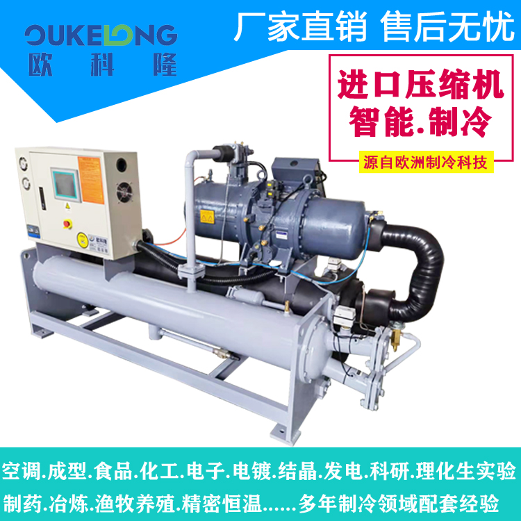 欧科隆50匹水冷螺杆式冷水机以高效节能、稳定可靠为核心优势,是工业及商业制冷系统的理想选择! 支持定制,欢迎咨询!