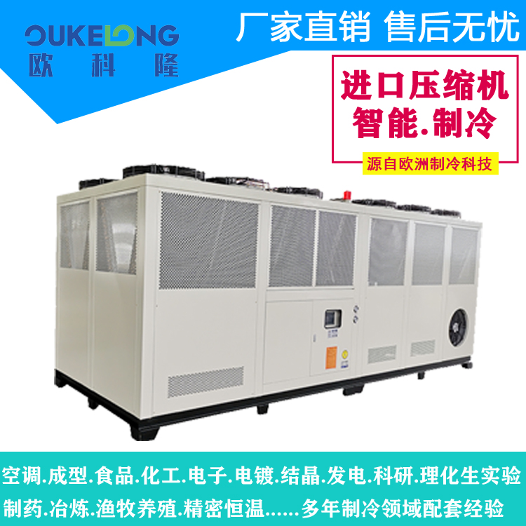 欧科隆150匹风冷螺杆式冷水机以工业级的稳定性和智能化管理功能,满足大型项目的制冷需求,年运行节能率可达25%以上。