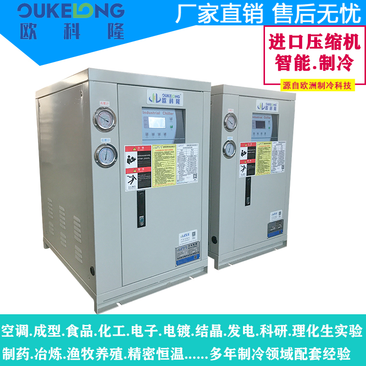欧科隆制冷3HP水冷箱式冷水机是一款紧凑型工业制冷设备,专为小型生产线和精密仪器冷却需求设计。该机型采用一体化箱体结构,集成水冷散热系统,提供稳定高效的制冷解决方案。