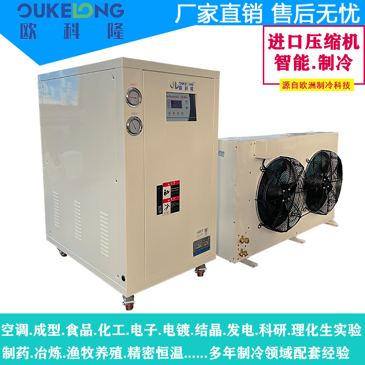 欧科隆5匹分体式冷水机是一款灵活高效的工业制冷设备,专为中小型生产环境和精密仪器冷却需求设计,核心特点如下: