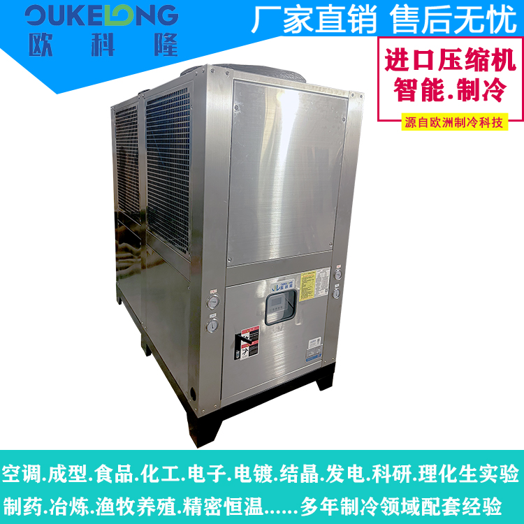欧科隆25HP风冷式304不锈钢冷水机是一款工业级高防腐制冷设备,专用于食品医药、化工电镀等腐蚀性环境。整机核心部件采用304不锈钢材质,兼具大冷量与卓越耐腐蚀性能。