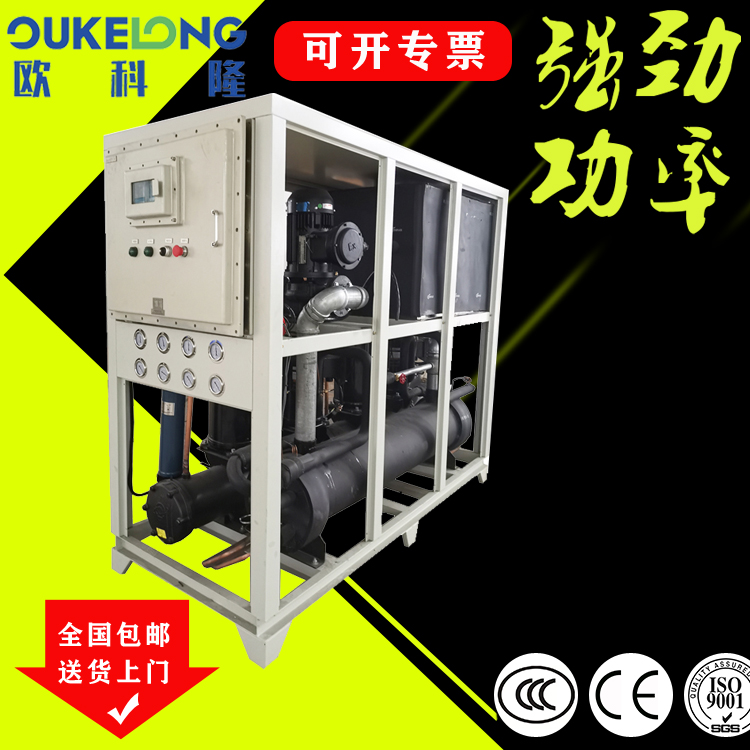 欧科隆水冷箱式防爆冷水机是欧科隆制冷打开市场的拳头产品,采用隔爆、增安、本安、正压、充油、充砂、无火花、浇封和气密等多种防爆方式,使机组可以在易燃易爆场合使用。