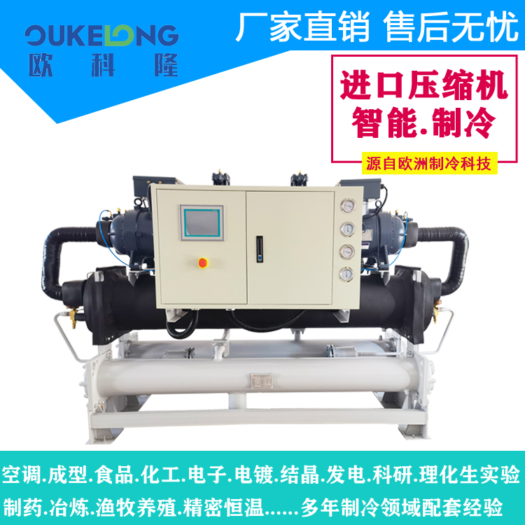 欧科隆制冷集团的中央空调全部精选原装进口名牌半封闭螺杆式和半密闭往复式压缩机。双螺杆5:6齿数比及先进的线性设计,低碳节能环保;性能好、噪音低。根据客户需要和冷吨位大小,采用单机或多机组合。压缩机可依负载变化,自动交替运转,平衡各压缩机的运行时数,大大延长了冷水机组的使用期限,无故障运行可达45000小时以上。