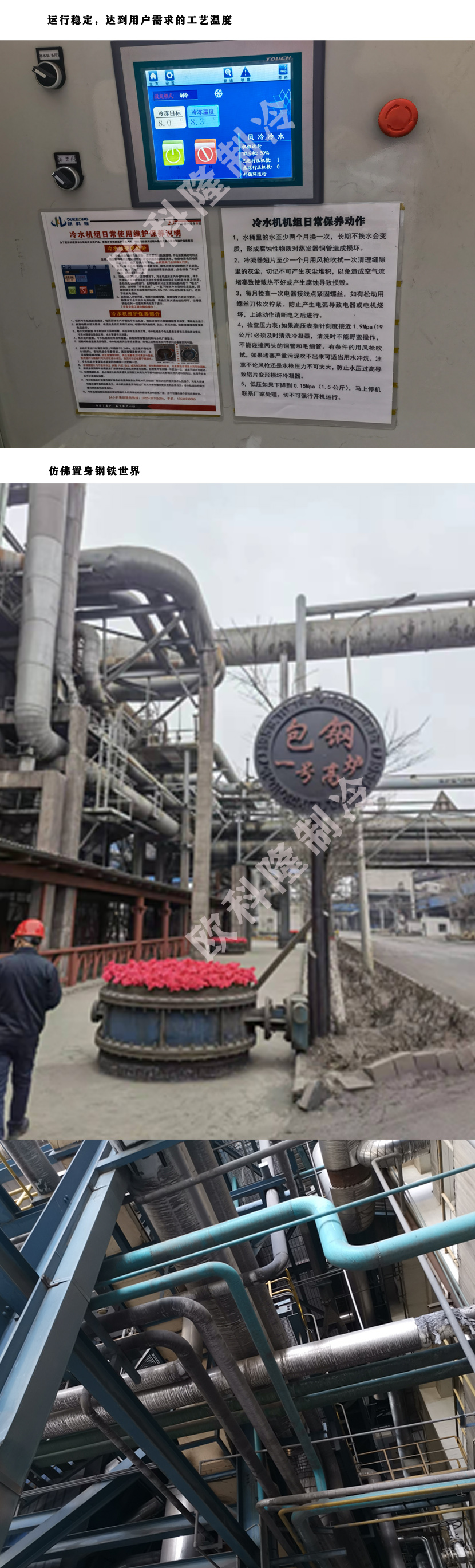 欧科隆制冷提供的冷水机组系列产品荣获集团一致认可,由于温控精准大大的提升了钢铁产量和钢铁的品质和硬度。