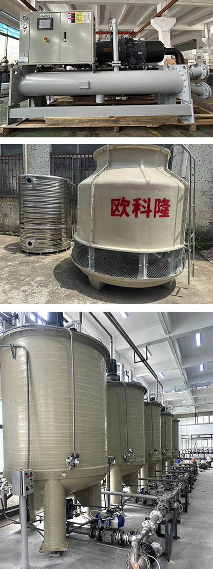 本案例位于深圳坪山某制药厂反应釜配套水冷螺杆式冷水机组,?;だ淙此?,保温水箱,内外循环水泵。