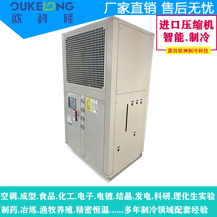 欧科隆自主研发设计实验室高低温冲击冷水机专为极端温度测试设计,具有快速温变、精准控温、高可靠性等特点。其温区覆盖-70°C至+150°C,升降温速率可达5~30°C/min,满足芯片、电池、材料等温度冲击测试需求(如JESD22、MIL-STD标准)。采用双循环制冷系统和高效换热技术,确保温度稳定性(±0.5°C)。