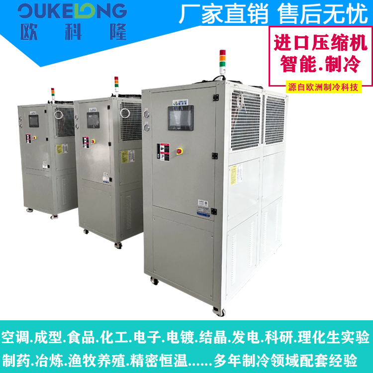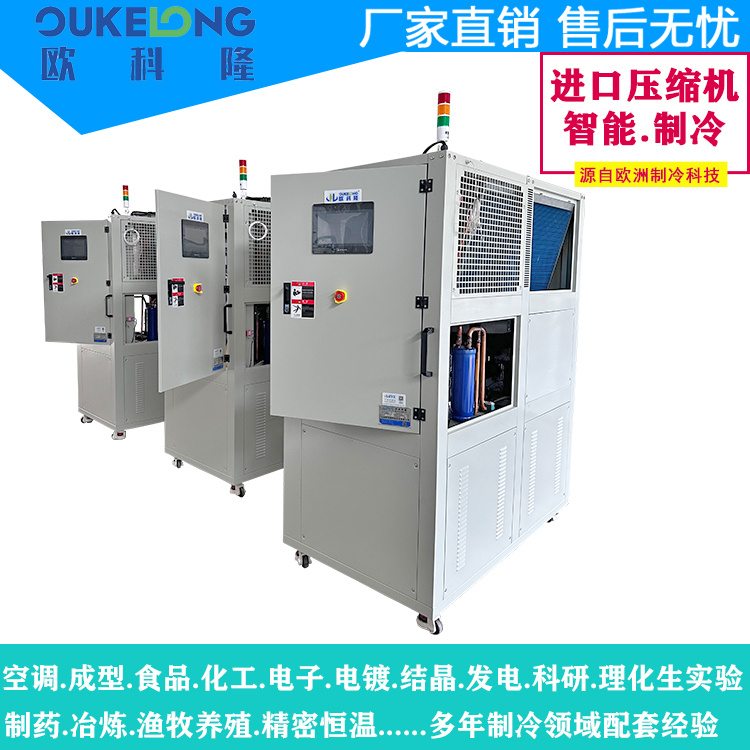 欧科隆制冷为半导体产业定制的多通道大功耗液冷机专为高功率电子设备(如AI服务器、大功率激光器、电力电子器件等)设计,具备以下核心特点: