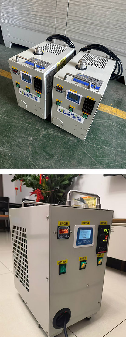 本案例为制冷量200W左右的微型高低温液冷机组,可以制冷到5度,又可加热到80度,应用于车载测试使用。